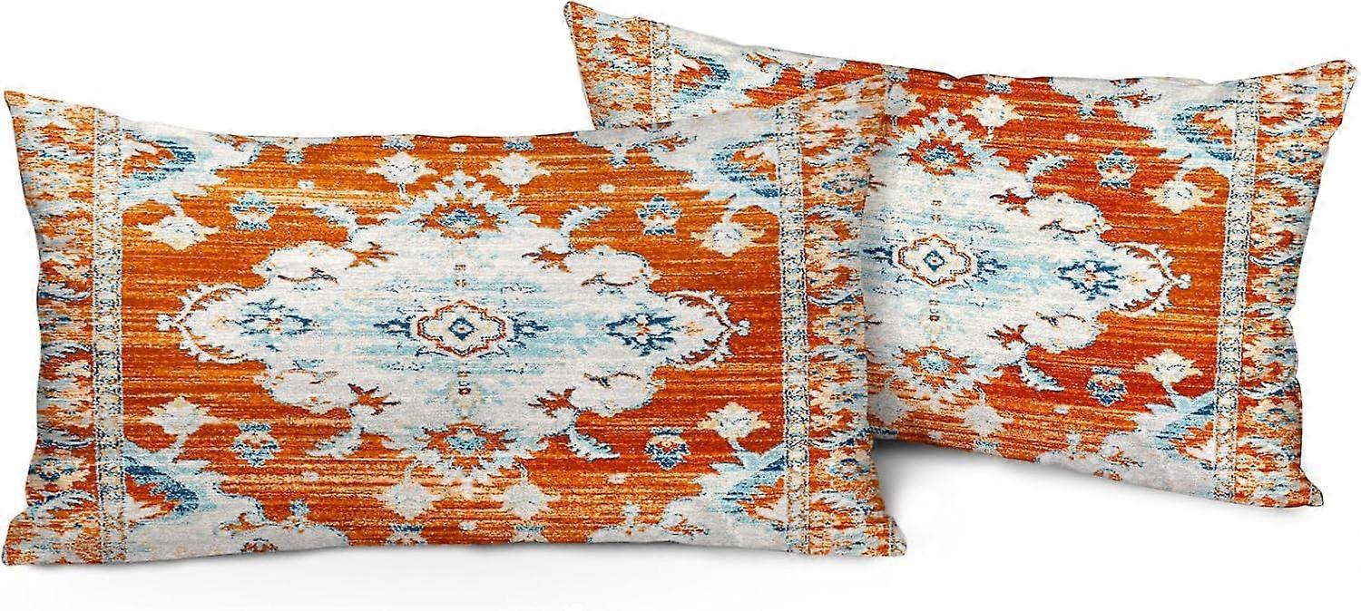 Boho Throw Pillow Covers 12x20 inch Set of 2, Orange Bohemian Carpet Double Sided Pattern Soft Plush Cushion Cover for Farmhouse Couch Sofa Bed Decora