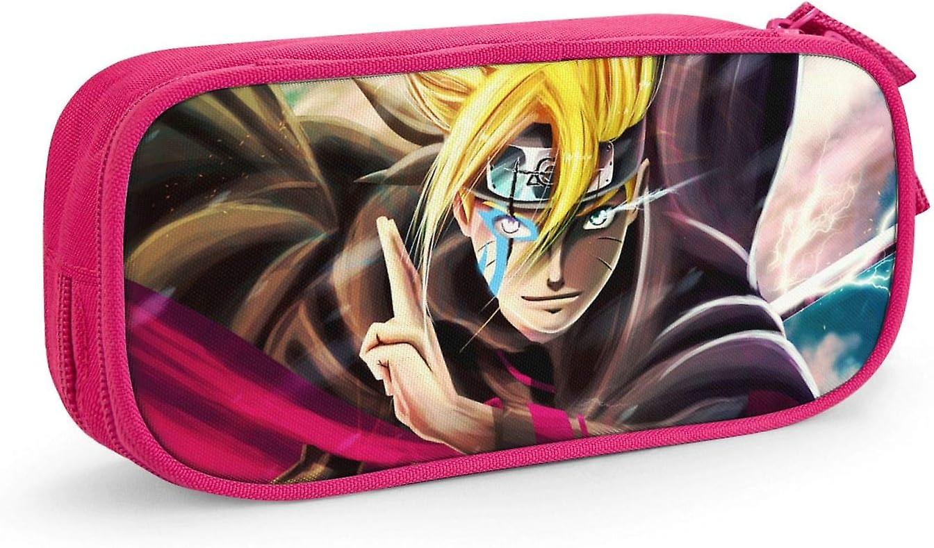 Boruto Naruto Pencil Case 3D Custom Printing Large Capacity Double Zipper Pencil Pouch For Office School Travel-Pink SAOE018049
