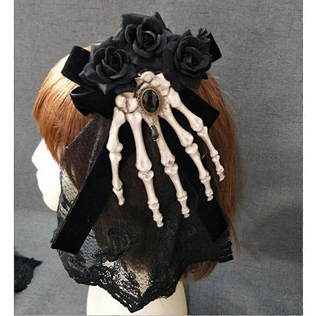 Halloween Skull Hand Hairbow Hairclip Hair Decor Black Bowknot Black Flower