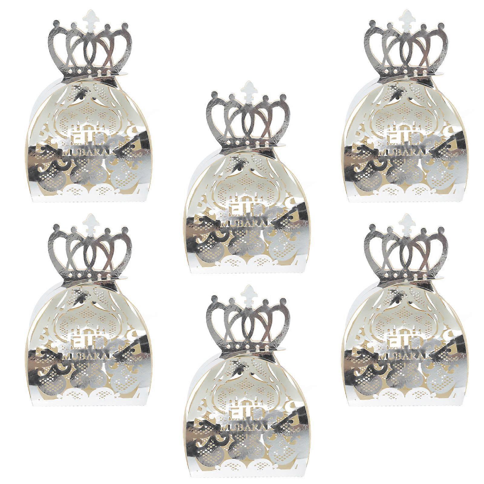 Box for Storage 6Pcs Eid Mubarak Paper Candy Boxes Silver