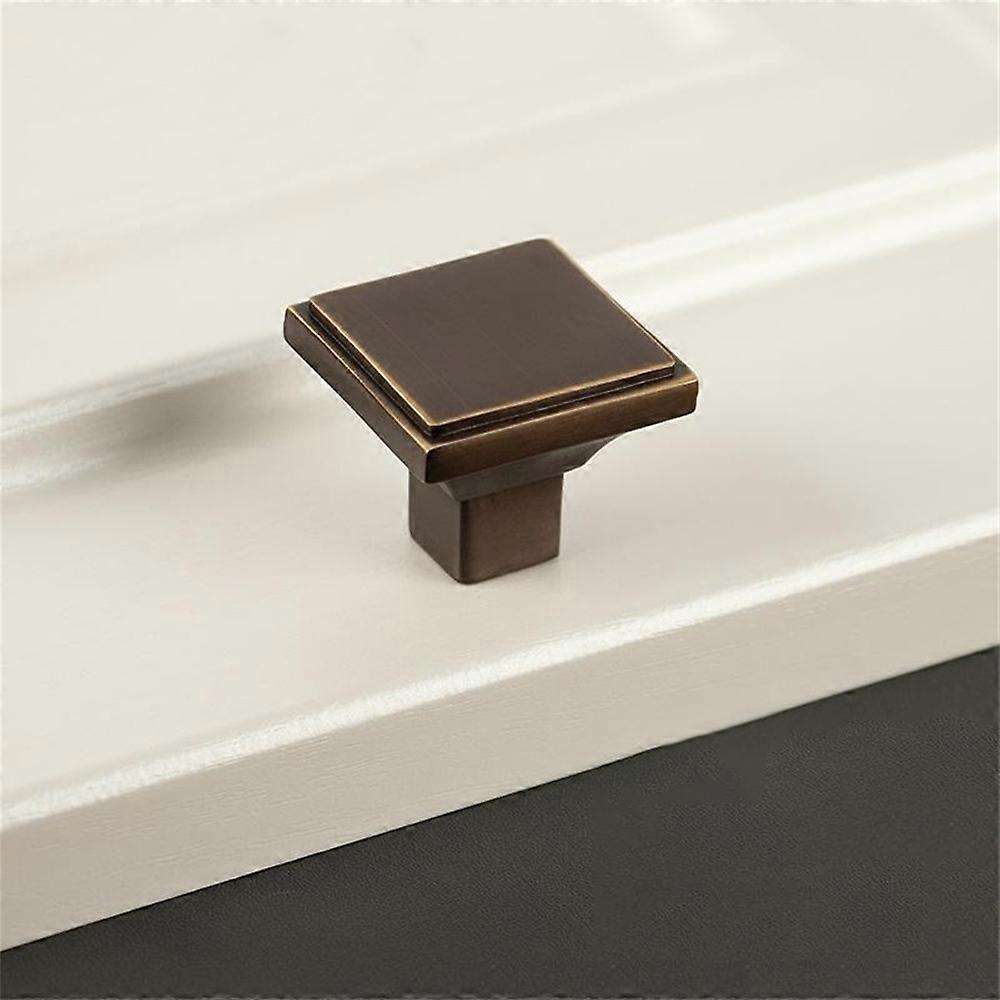 BR06 Solid Brass Cabinet Drawer Pulls 34 x 28mm Wardrobe Handles Single Hole Knobs - Coffee Bronze