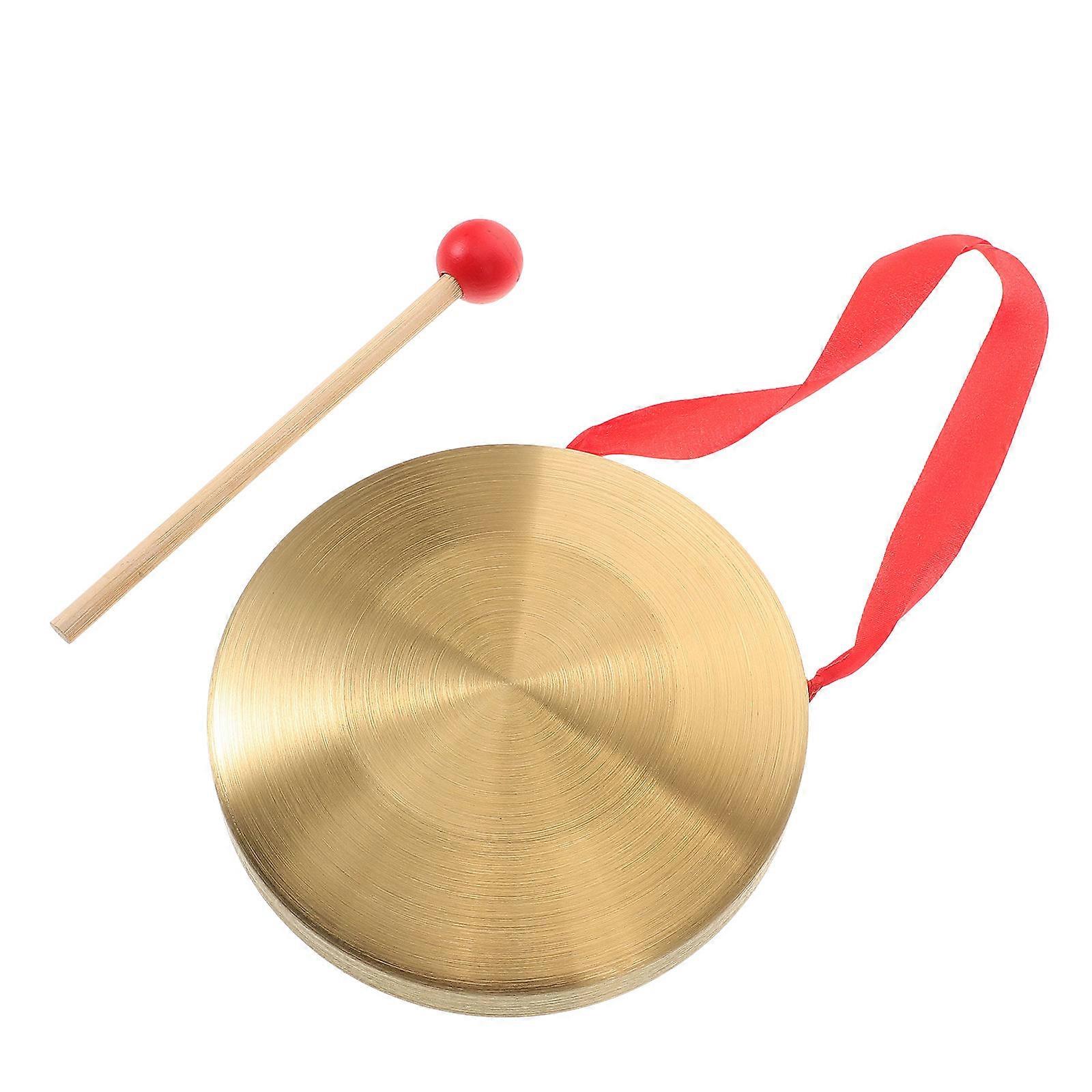 The brass gong with a mallet and red ribbon is a must-have for anyone involved in traditional Chinese music or cultural performances. Its deep, resonant sound is Ideal for , sound therapy, and other musical events. Simply use the mallet to strike the gong and produce a powerful, clear tone that resonates beautifully. The red ribbon adds a decorative element, making it suitable for ceremonial use. Features -Color:Golden -Material:Copper,wood -Size:15.00X15.00X1.80cm/5.89X5.89X0.71in -Size:17.00X4.00X4.00cm/6.68X1.57X1.57in -Pure brass: crafted from brass, this gong delivers a pure and resonant sound, enhancing your musical expression. -Visual enhancement: the included red ribbon adds a striking visual element, making your performance more captivating. -Ergonomic mallet: the mallet is designed for optimal striking force, providing a comfortable and enjoyable playing experience. -Wide range of uses: ideal for ethnic orchestras, school music classes, and stage performances, this gong meets diverse needs. -Decorative appeal: this gong also serves as a decorative item, adding cultural and artistic value to your home decor Package list: 1 x gong instrument 1 x wood mallet