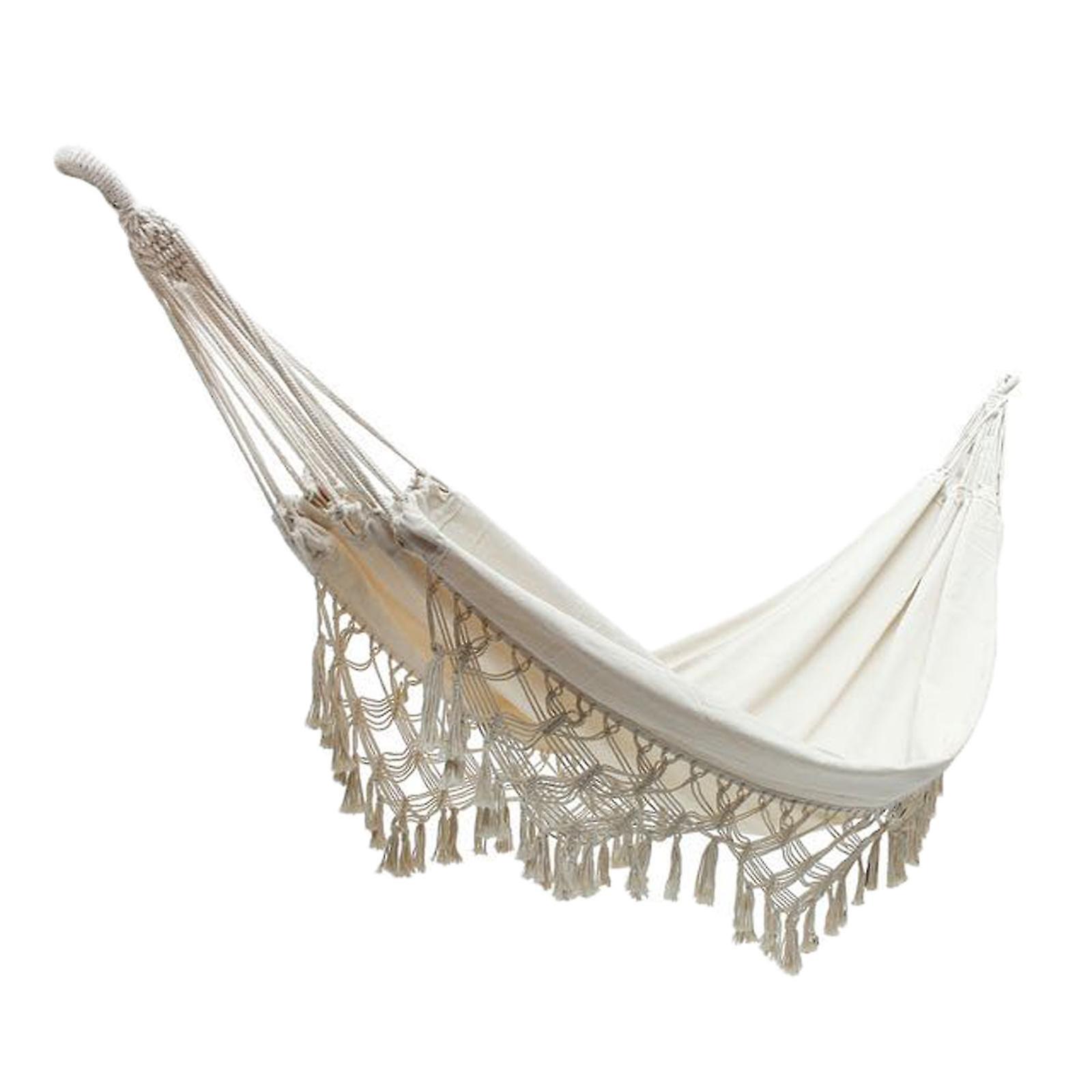 Brazilian Macrame Fringe Hammock 2 Person Hanging Swing net for Travel Porch 78.74 x 59.06in white
