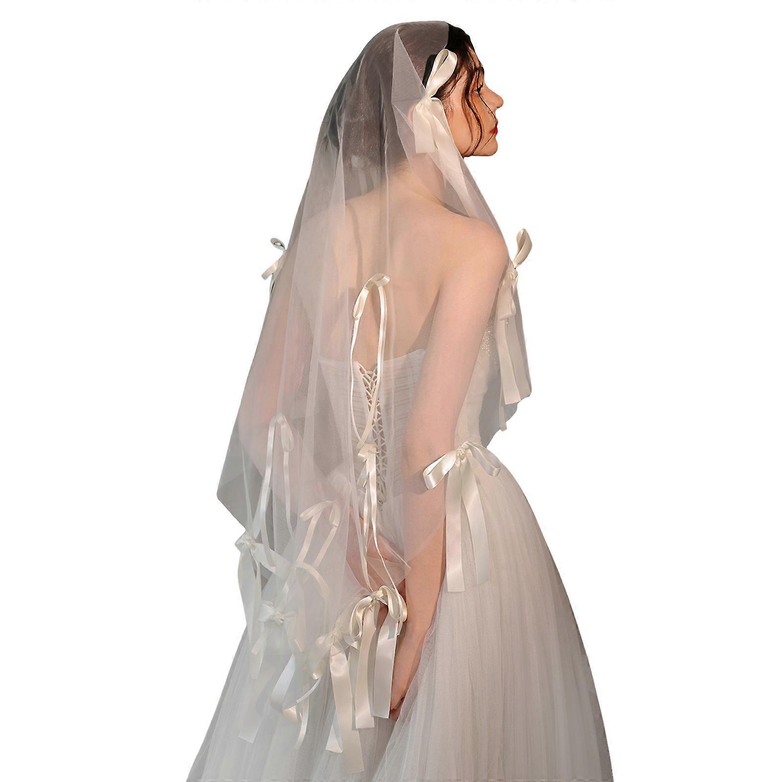 Breathable Wedding Headpiece Subtle Ribbon Accent Bridal Veil Simple Single Layer Design Soft Sheer Fabric For Bride White