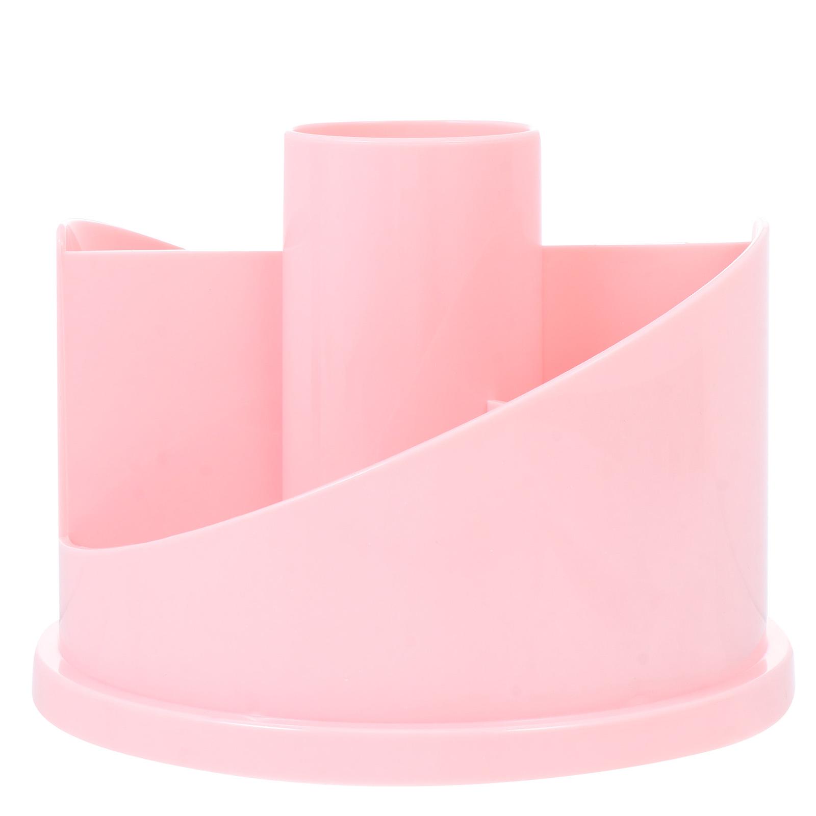 Brush Tool Cylinder for Makeup Tool Holder Pink Plastic Rotatable Function 1Set