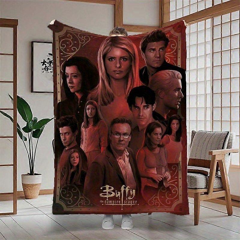Buffy the Vampire Slayer TV Show Character Print Flannel Blanket - Soft All-Season Throw with Vibrant Red & Black Design-EDFGH323