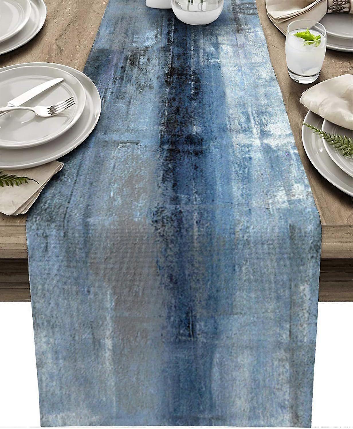 Burlap Linen Table Runner 70 Inch Long, Retro Rustic Art Abstract Modern Decor