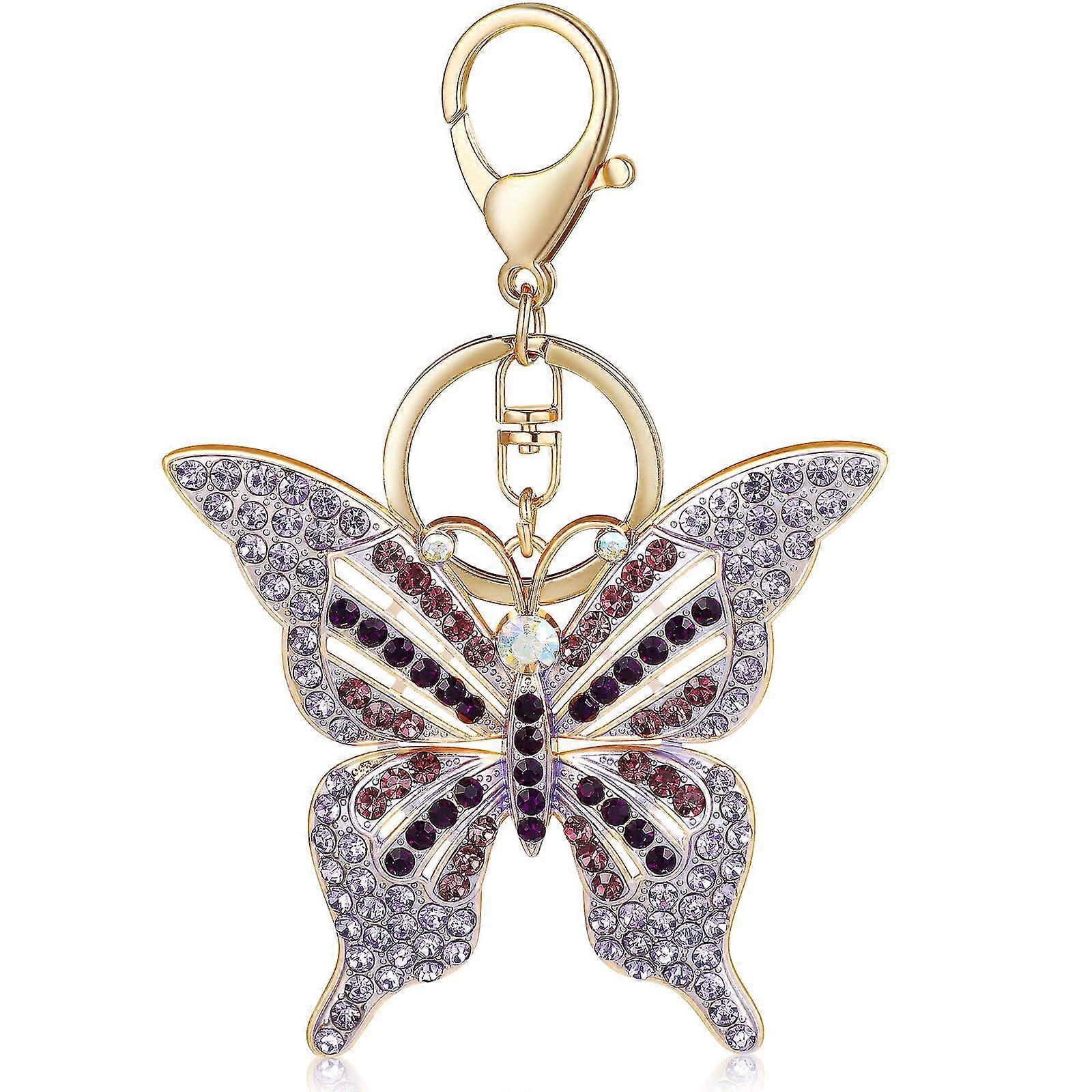Butterfly Keychain Sparkling Rhinestone Butterfly Shape Pendant Key Chain with Keyring Bag Purse Decoration