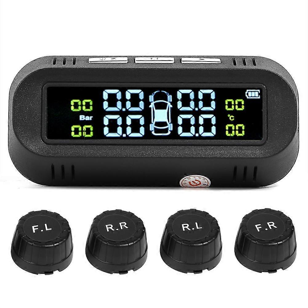 C68 USB+Solar Charging Car Tire Pressure Monitor Alarm System w/ 4 Sensors Large Capacity Built-In Metal Lithium Battery