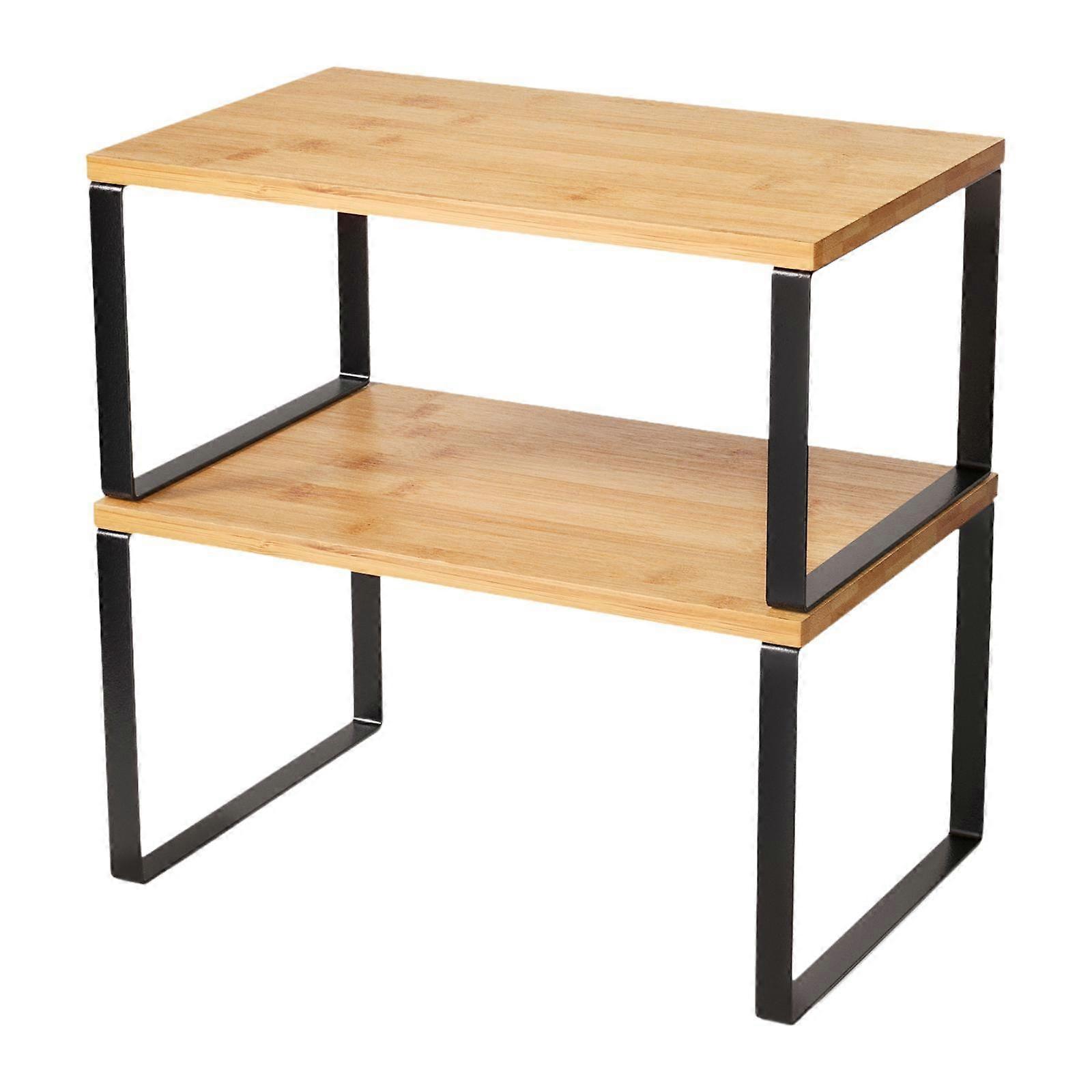 Description: 【Versatile】: This multi functional storage rack is for organizing , bottles, and kitchen essential on your countertop, keeping your space tidy and efficient 【Stackable Two Tier Design】: Featuring a two layer stackable design, this kitchen organizer maximizes storage capacity while allowing easy access to items stored on both levels 【Materials】: Crafted from bamboo and metal materials, this kitchen cabinet organizer offers a sturdy and stylish solution for your kitchen storage needs 【Easy to Assemble】With their simple structure, the kitchen cabinet rack can help you organize your kitchen items and keep your kitchen clean and tidy 【Multifunction】The Cabinet Organizer can be used them in the dining room as a way to elevate your table centerpieces, on your bedroom desk to organize your items, or even in your bathroom to neatly store your bathroom essentials Size Chart:  upper layer : 30 x 18.5 x 13.7 cm/11.81inchx7.28inchx5.39inch lower layer : 30 x 19.5 x 15.8 cm/11.81inchx7.68inchx6.22inch   Package Includes: 2 storage racks Note: Please allow slightly errors due to manual measurement and different monitors.