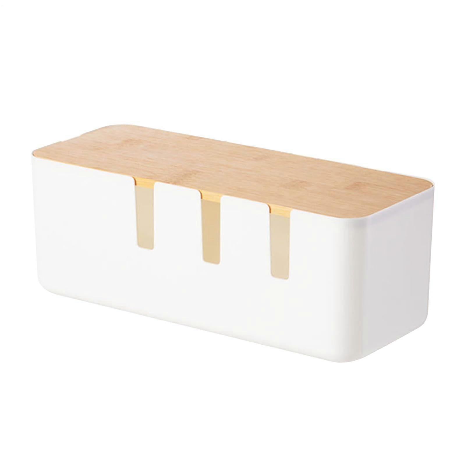 Cable Box Power Strip Organizer with Wooden Cover for Power Strip USB Hub System TV Computer Workspace Home