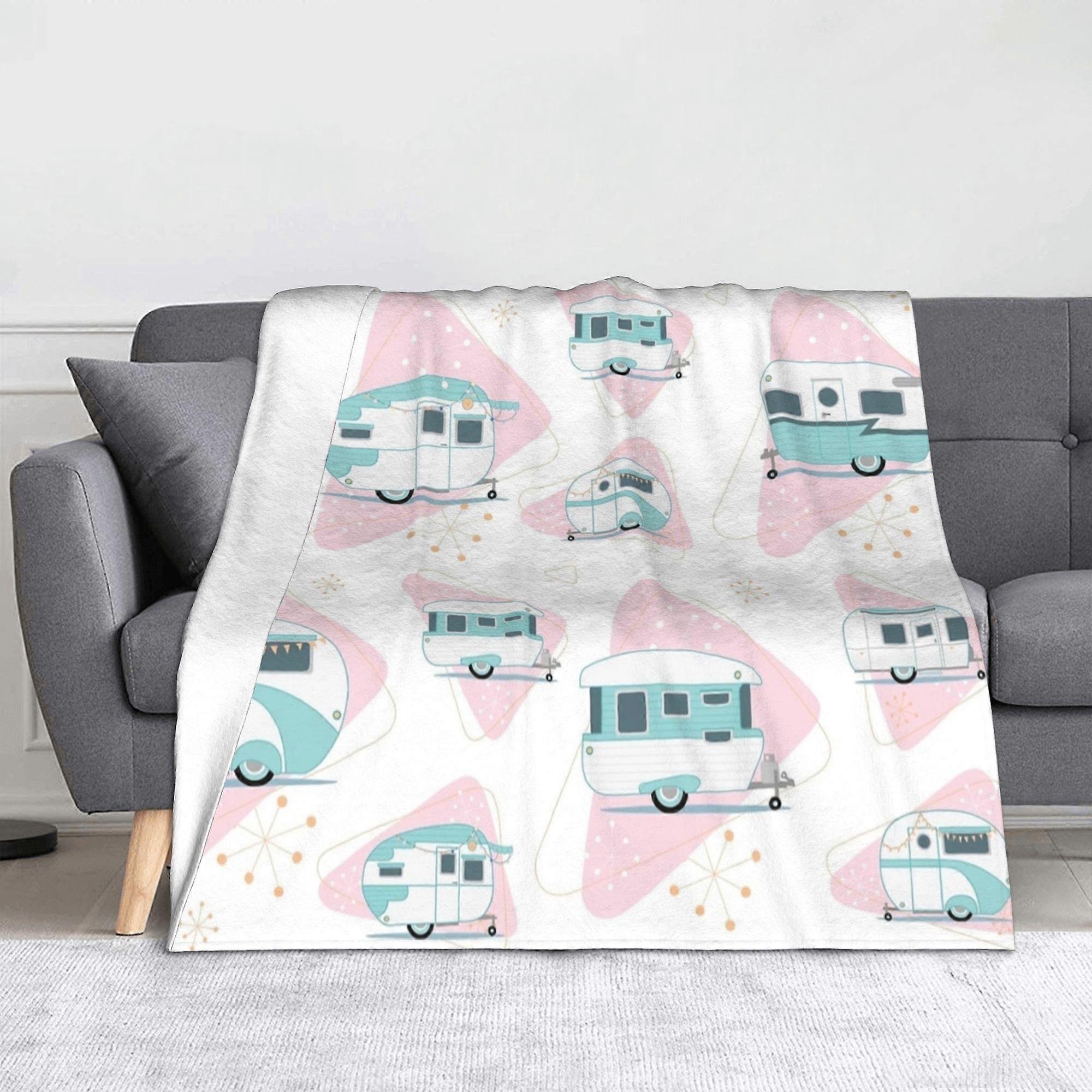 Camper and Forest Pattern Blanket Velvet Textile Decor Camping Multi-function Soft Throw Blankets for Sofa Office Bedspread