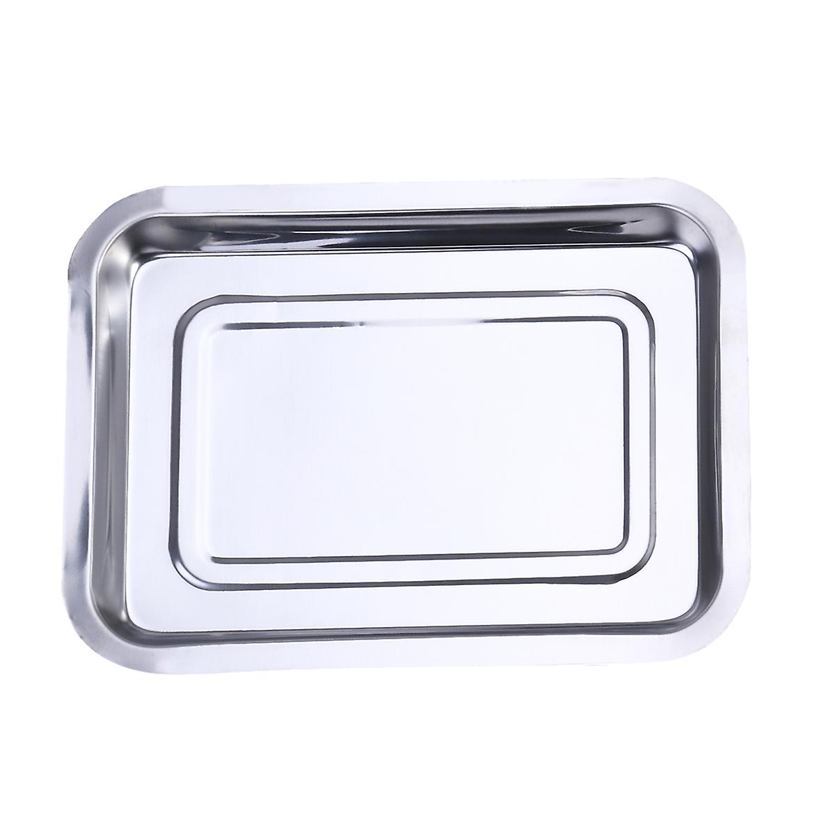 Description   This stainless steel tray is designed for mulituse. It is waterproof, rust resistant and wear resistant so it can be used as grill pan, dishes holder and plate. It also can be a meal plate if you like. Food grade steel will not do harm to your health. Feature   - Color: Silver. - Material: Stainless Steel. - Size: Approx. 27x20x2/10.6x7.9x0.8inch. - material with fine workmanship insures it has long service time. - for kitchen use, good to be grill plate or pan, or dish holder. - It feels smooth and no edges, safe and light weight. - Easy to clean, it can be washed with water and soap, never rust. - Note: Please use clips to carry it when you use it to be a grill pan after putting it on fire for a while.Packing list: 1 x Stainless Steel Grill Plate Resuable Dish Drying Tray Dish Washer Grill Pan 27x20x2cm