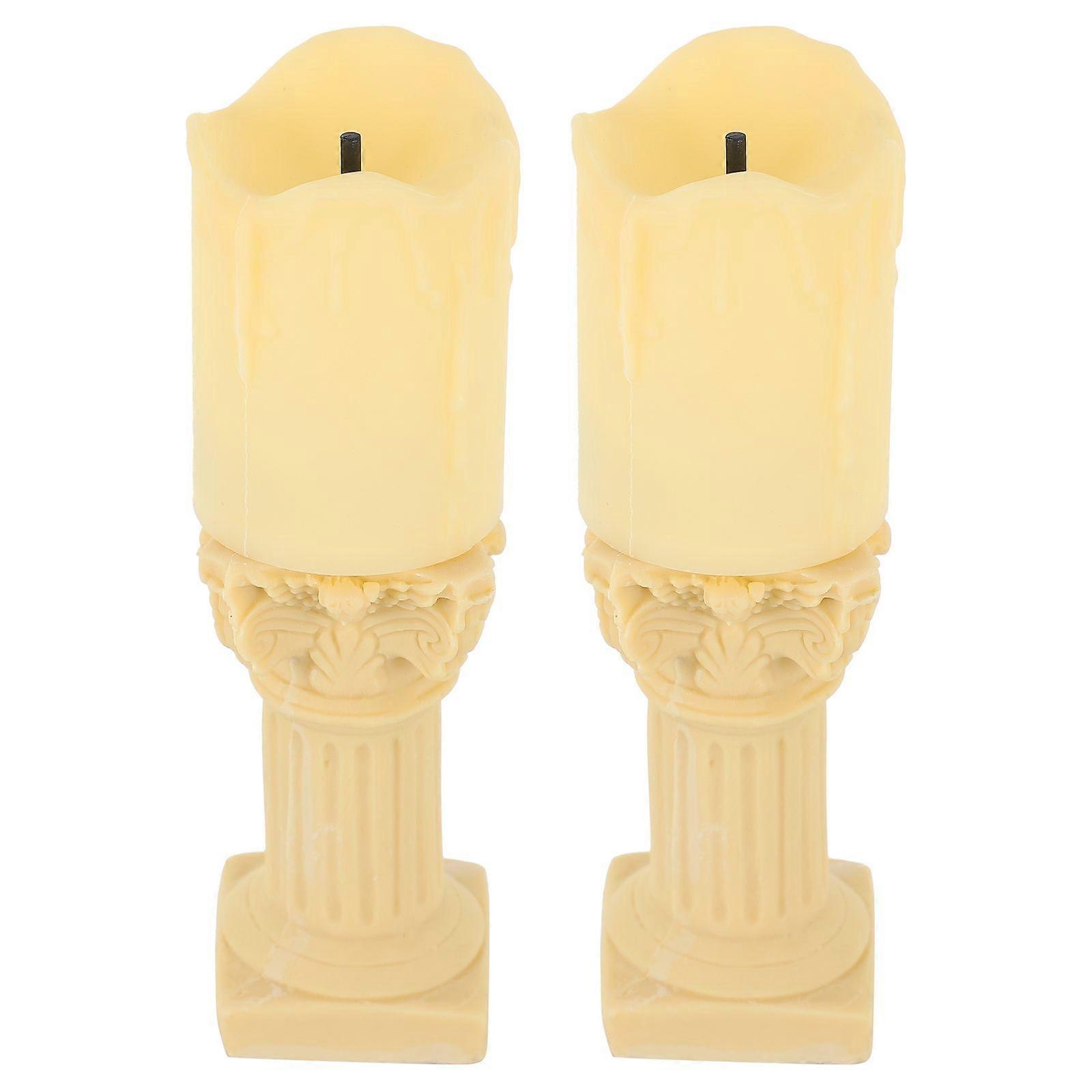 Candle Shape Light Plaster Candlestick for Decor 4Sets Beige Statue