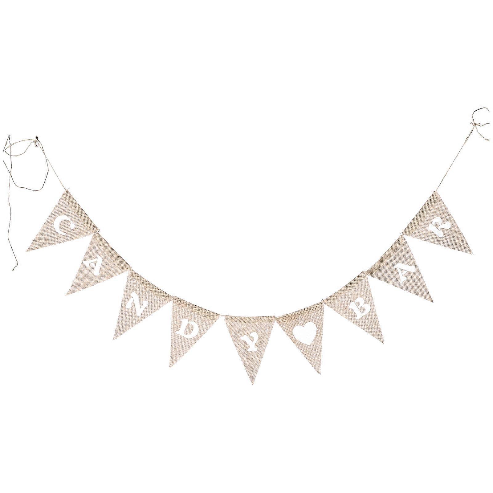 Candy Bar Heart Banner Hessian Pennant Triangle Burlap Banner Triangle Flags for Party Decoration