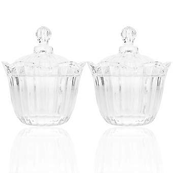 Candy Storage Box Glass Jar with Lid Snack Containers for Kitchen Counter Simple Style Floral Pattern 18X14.5cm 2Pack