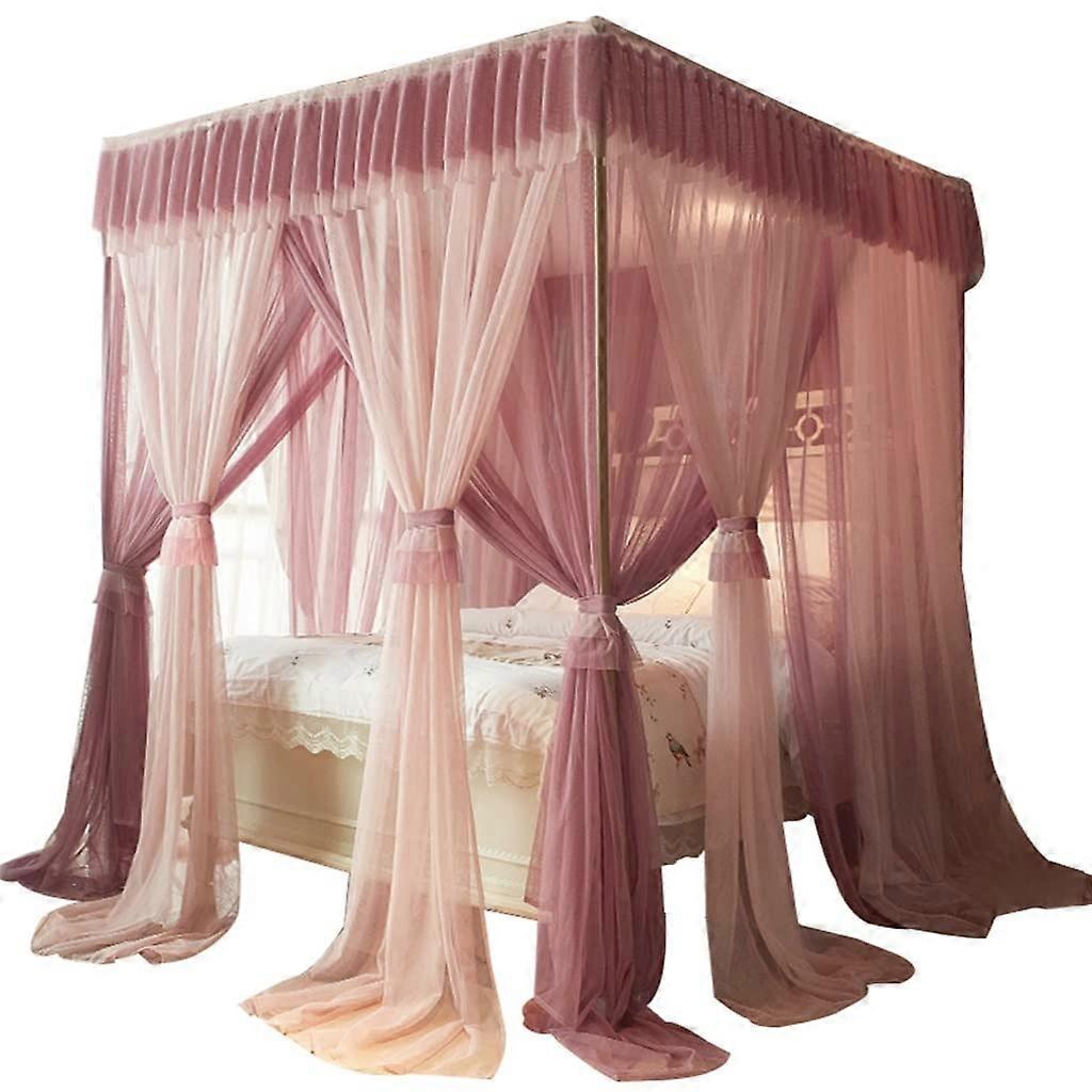 Canopy bed, European mosquito net in princess style, double canopy bed with stand, easy to dismantle (color: A1, size: 180 x 200 x 210 cm)