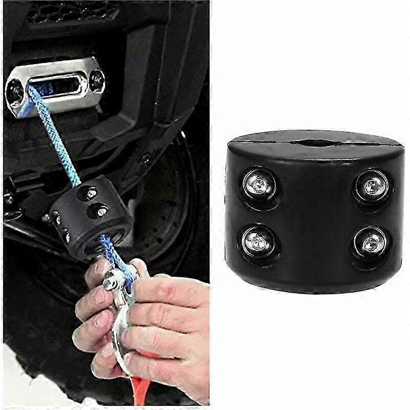 This cable hook blocker fits between the two outer rollers of the winch fairlead, eliminates wear on the hook rollers. Prevents the winch motor and gears from pulling the cable too far and dropping the rollers. Maintains tension on the hook to prevent the cable from coming loose. Eliminates the noise of the hooks when lowering. Slots have also been designed to function as an anti-reverse cable should the cable break. Specification: Fitment: for most ATV UTV winches br/>Material: rubber and metal