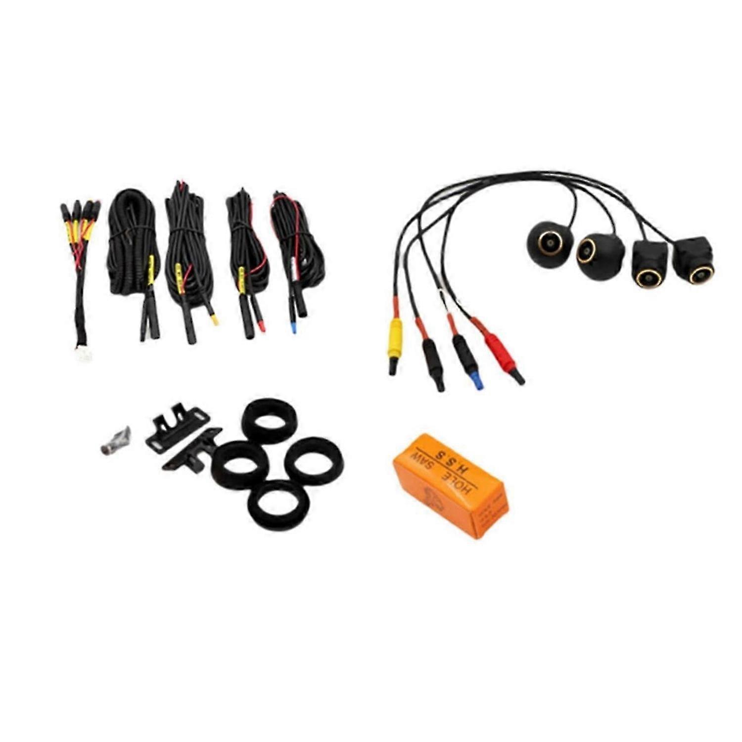 [Signal Stability, High Quality Material] Upgraded Version core, which can achieve the best conductivity, prevent the loss of video signals, and there are two more protection methods to stable signal transmission. The cable's layer is made of of PVC material, to high temperature, anti-, wear resistance, sturdy, not easy cracked, windproof, rainproof and shockproof, can be used outdoor. [Compatible Devices] Support the use of video or audio equipment with type jacks of rear-view cameras, TV boxes, DVD players/recorders, parking monitor display,VCRs, , and camcorders. Definition: AHD1080P Master chip: 8536+2053+1005 Lens angle: Fisheye 200 degrees<br><br>Lens: 6 layers of optical glass lens Waterproof level: IP68 waterproof Standard: PAL positive image Default power supply: DC3.3-5V Android connector: 12P standard Connector working temperature: -15℃-+60℃ Applicable Equipment: car DVD / , display, camera or other display of the lotus head video input interface Note: If you are not professional for technology, please don't buy this product we strongly recommend you professional installation. Colour:AS SHOWN Material:ABS<br><br>Package Contents: 4PCS * Car Camera 1Set * Wiring Harness 1Set * Mounting accessories<br><br>Only the above package content, other products are not included. Note: Light reflection and different displays may cause the color of the item in the picture a little different from the real thing. The measurement allowed error is +/- 1-3cm.