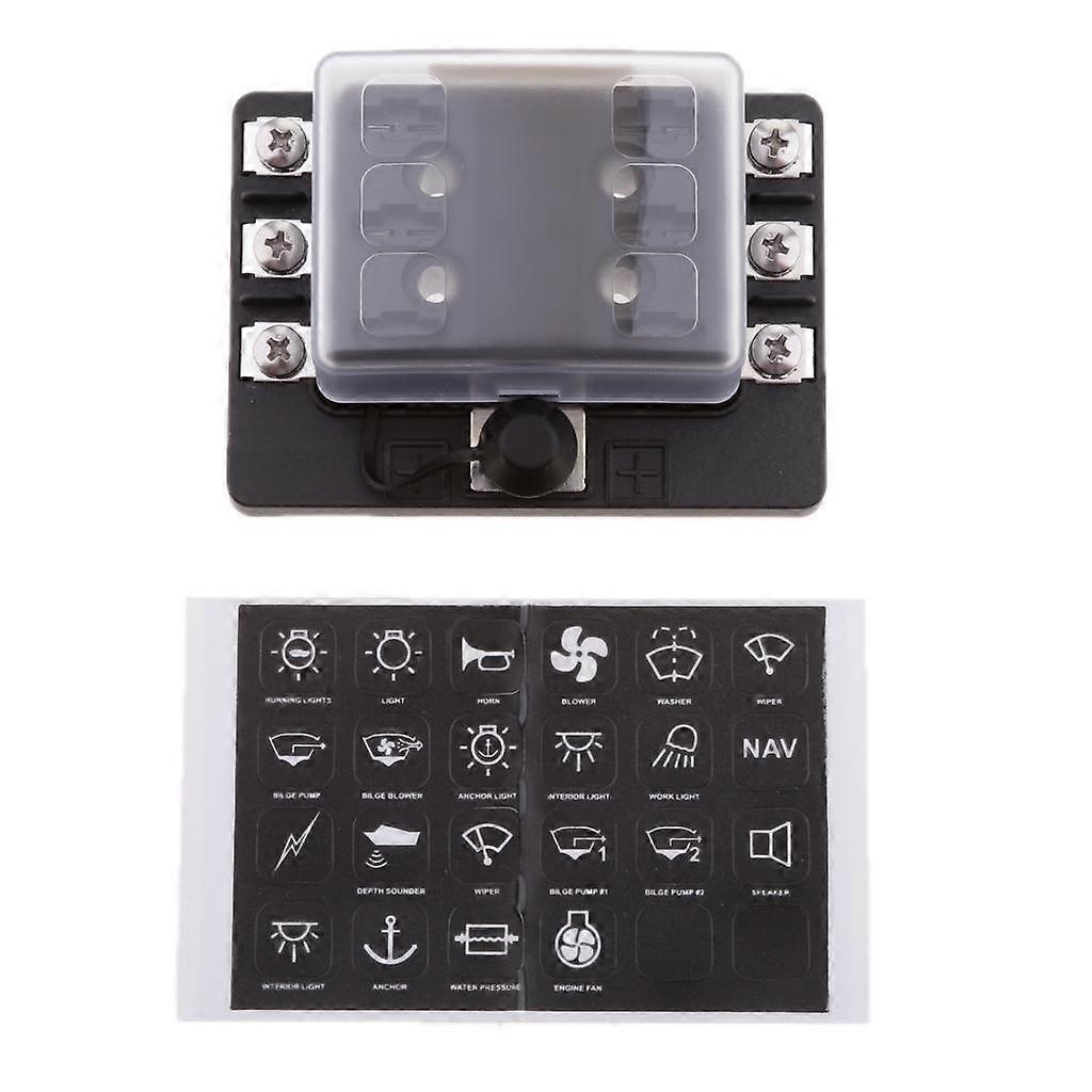 Car Boat RV 6 Way Mini Micro Blade Fuse Box Block Holder Panel Clear Cover