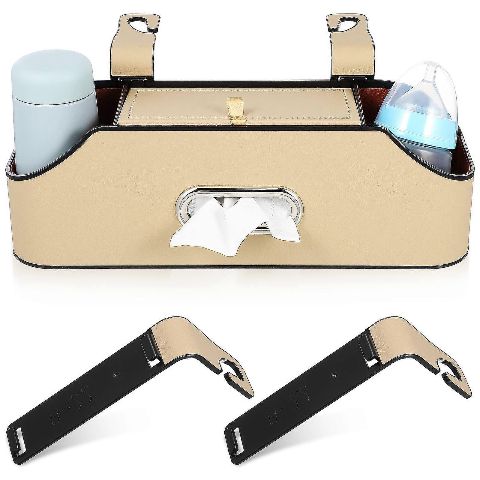 Car Rear Seat Organizer with Cup Holders, Headrest Tissue Dispenser, and Soft Lining for Easy Access and Functional Storage in Vehicles