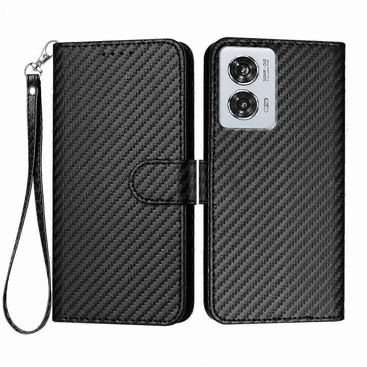 Carbon Fiber Texture Leather Wallet Case with Strap for Moto G85 5G and Edge 50 Fusion 5G Mobile Cover in Black