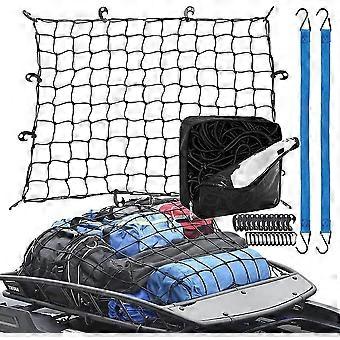Cargo Bungee Net 3 X 4ft Max Stretches To 6 X 8ft - 24 Pcs Universal Hooks & 2 Cargo Cord, Storage Bag - 4 X 4 Inches Mesh - 36 X 48 Inches Oversized
