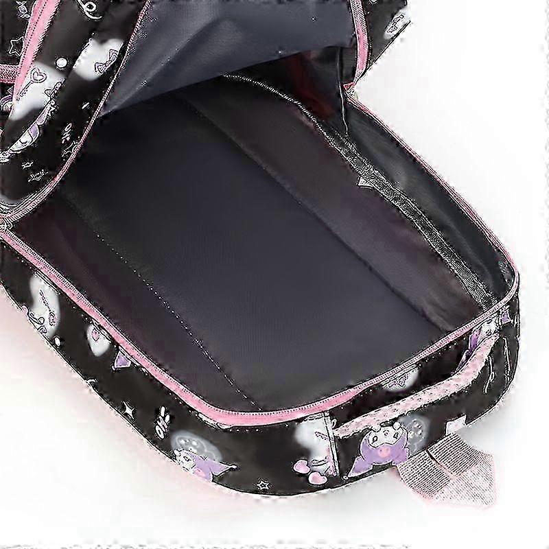 This cartoon backpack is specially designed for elementary school students, combining practicality, safety and fun in one perfect package Crafted from premium high-density nylon fabric, it offers excellent water resistance and durability to withstand various weather conditions and daily use. The interior features a well-organized layout with a spacious main compartment that fits A4 textbooks and notebooks perfectly, a front zippered pocket for stationery and small items, and two side mesh pockets for water bottles or umbrellas The ergonomically designed padded shoulder straps and breathable back panel effectively reduce shoulder pressure and protect childrenand 39;s developing spines. Lightweight construction ensures no extra burden during daily commute Features popular cartoon patterns with vibrant colors that children adore, making school days more enjoyable. Available in multiple color options to suit different preferences - classic black, sweet pink, fresh green, and mysterious purple Enhanced safety with reflective strips that improve visibility in low-light conditions, providing added security and peace of mind for parents. This backpack is not just a school companion but a reliable guardian for your childand 39;s growth journey Note: Due to the light and screen setting difference, the item's color may be slightly different from the pictures. Please allow slight dimension difference due to different manual measurement. Sold by-Minnanxin