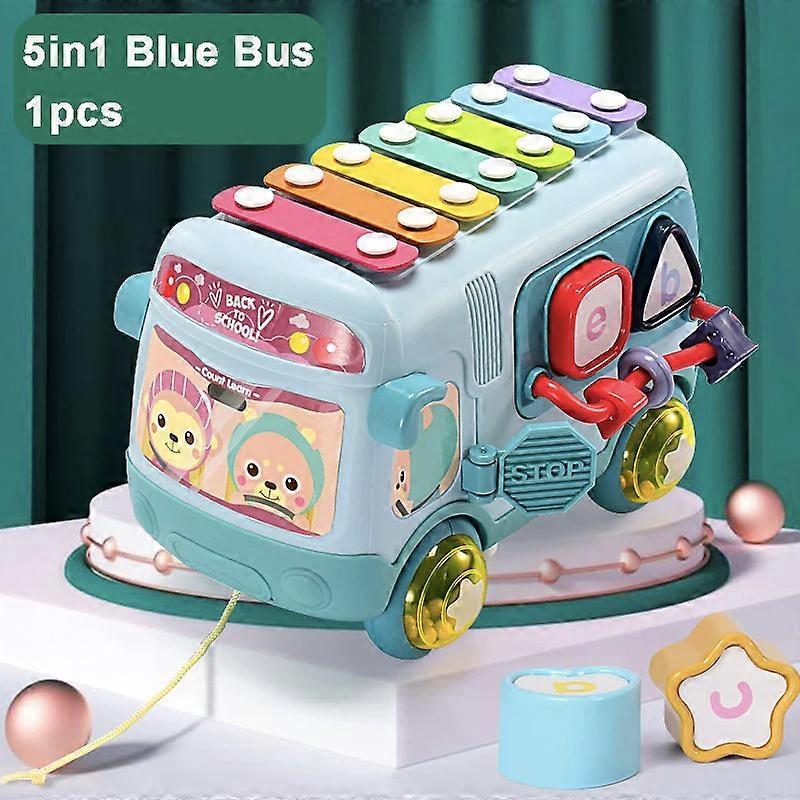 Cartoon Bus Toys Music Activity Bus Children withShape Sorter Whack-a-Mole for Kids Interactive Game