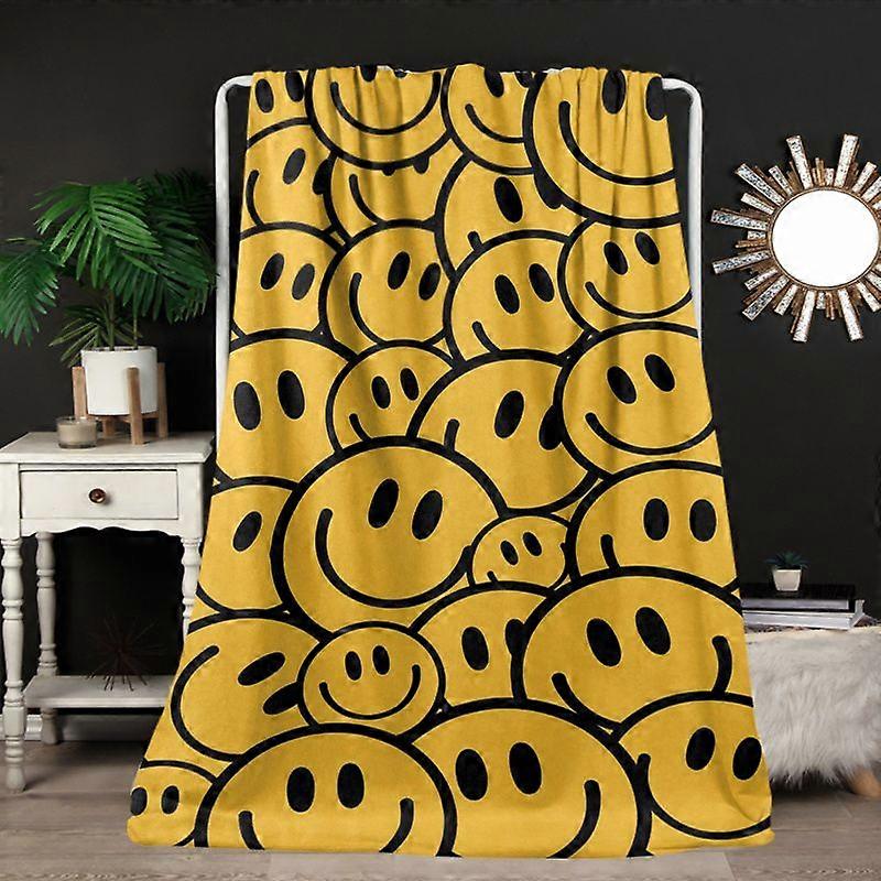 Cartoon joyful Face Printed Flannel Blanket - Modern Style Blanket, Knitted Craft, Polyester - Suitable for Sofa, Bed, C-EDFGH246