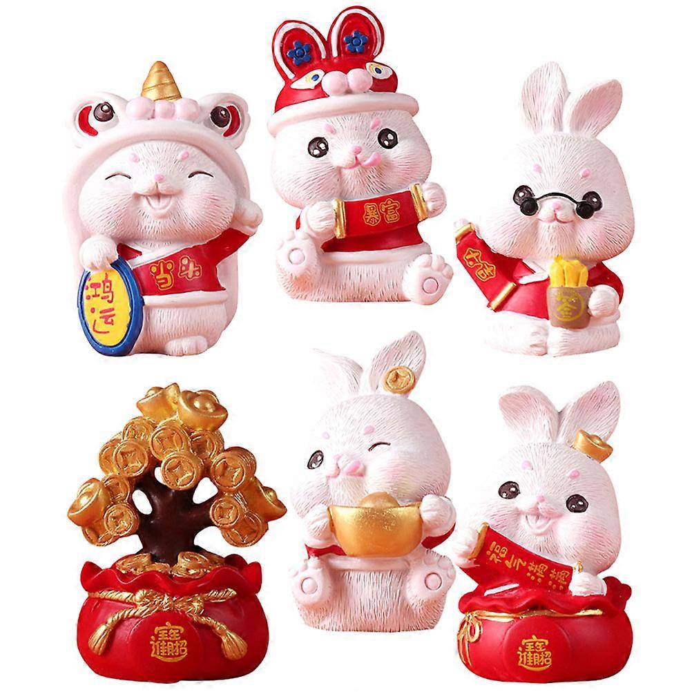 Cartoon Rabbit Figurines Rabbit Statue for Desktop 2Sets Assorted Color