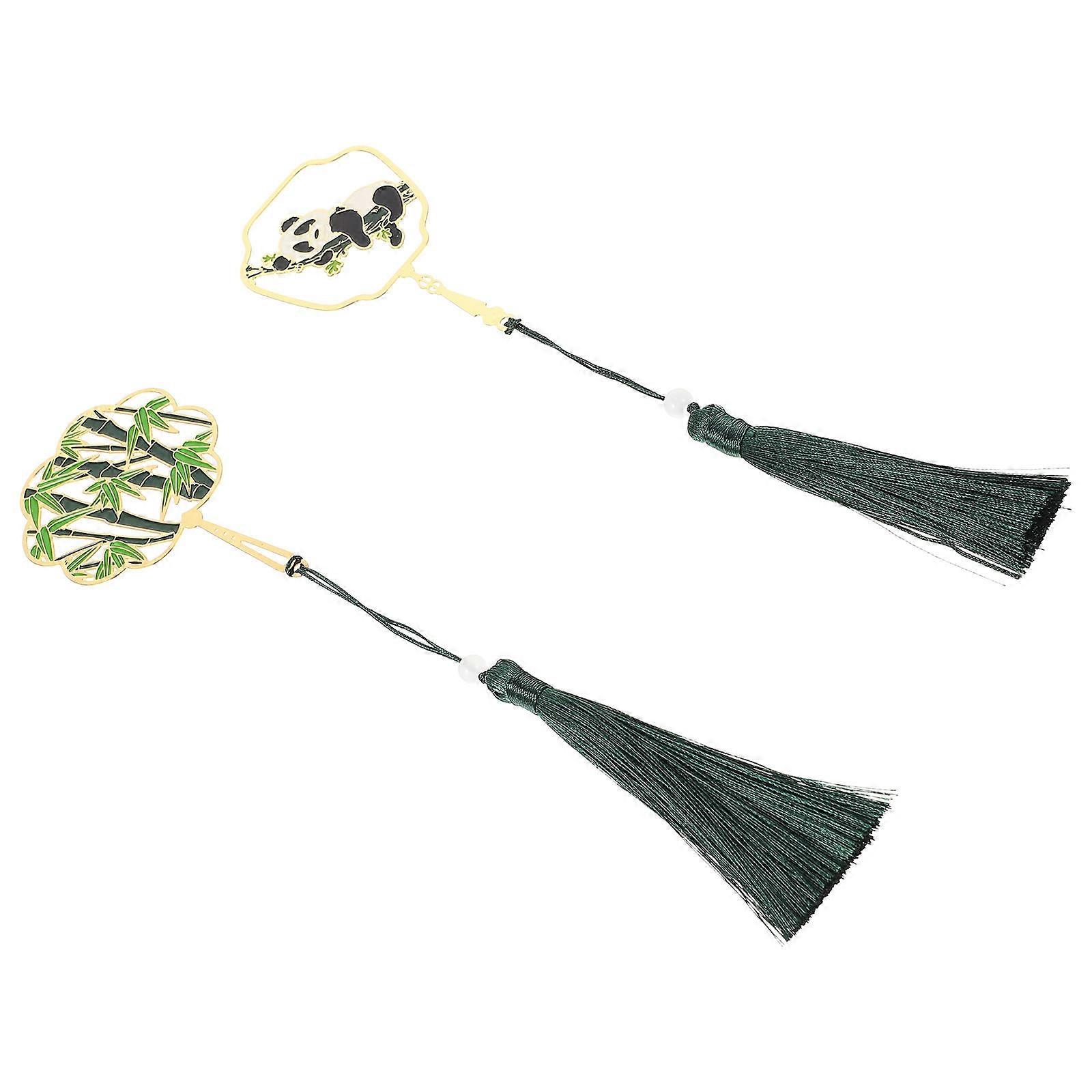 Cartoon Style Panda Bookmark Metal Elegant Book Mark Home Reading Office Use Assorted Color Tassel Page Marking 2Set