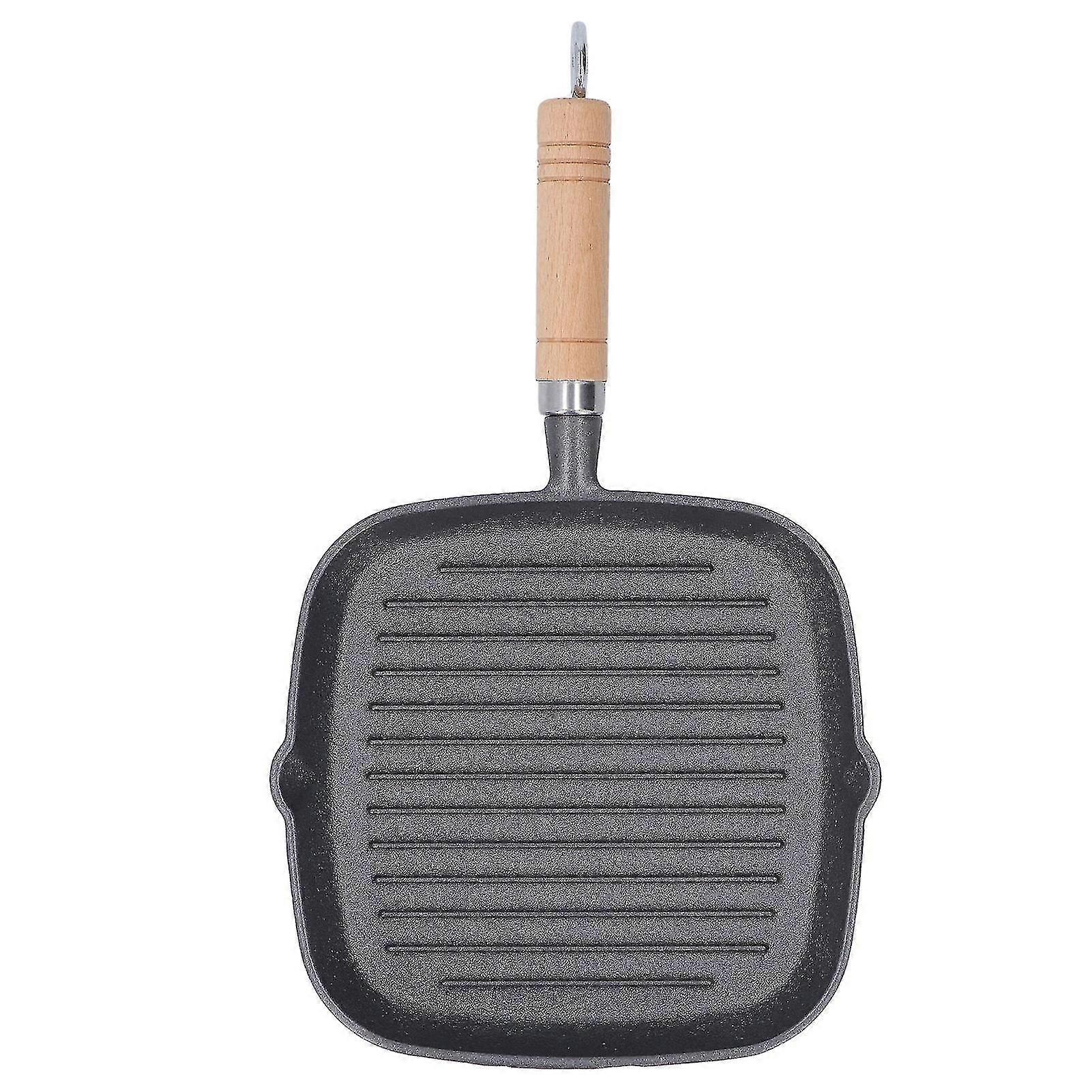 Cast Iron Grill Pan with Wooden Handle - Multipurpose, Non-Stick, Perfect for Steak, Bacon, and Onion