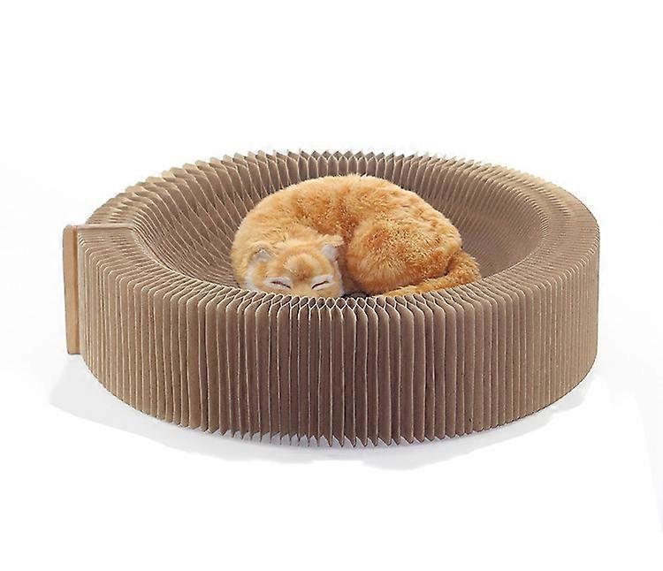 BASKET & SCRATCHER 50 CM DIAMETER- Cats love cardboard to scratch and to hang on. The 2 are reunited for their greatest satisfaction. FOLDABLE & PORTABLE - This cat scratching basket folds into a portable size (26 x 13 x 7.8 cm) for easy storage or taking. HIGH DENSITY CARDBOARD - Resists your cat's claws longer. NATURAL & BIODEGRADABLE CARDBOARD - Perfectly healthy cardboard for your cat and ecological for the planet. DRIED CATNIP INCLUDED - To make your cat own their new scratching basket or adore it even more, use the dried catnip with the scratching basket.
