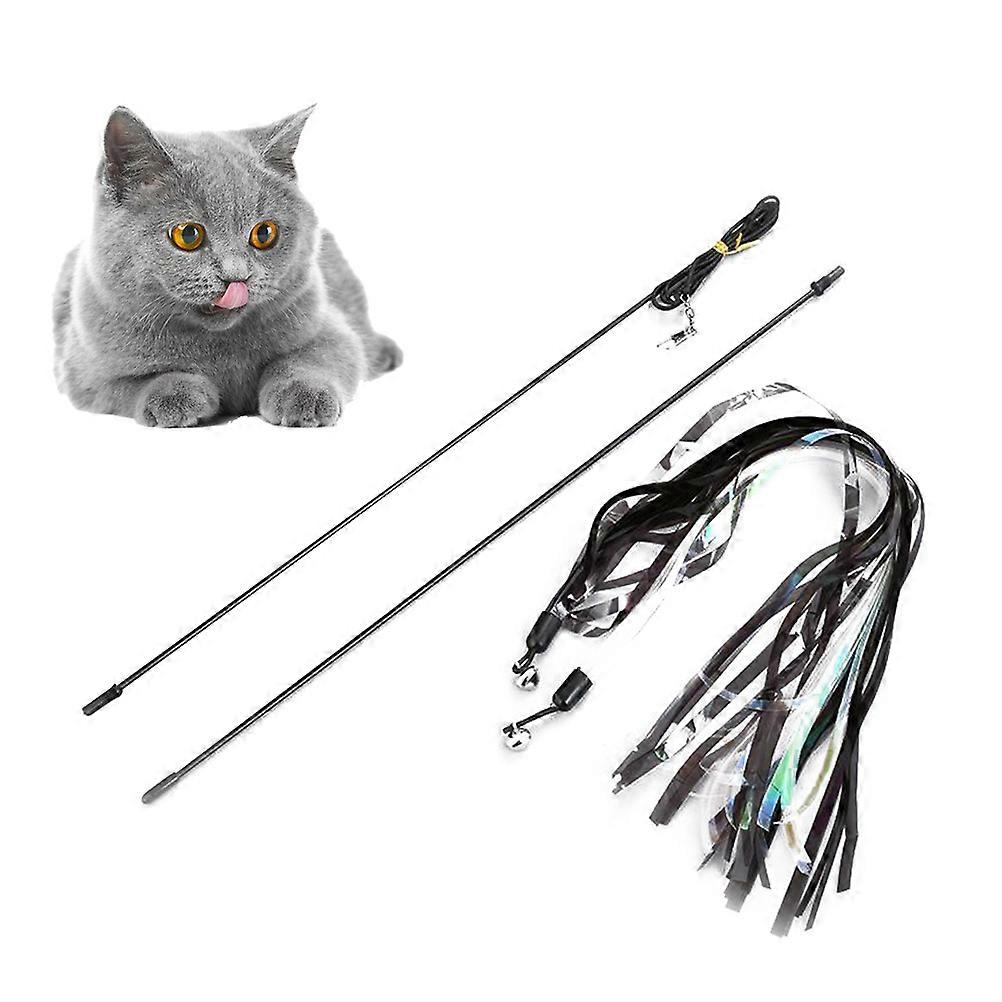 Cat Interactive Matching Training Teaser Wand Toy for Indoor Play and Pet Training in Black with 1 Set of Replacement Heads