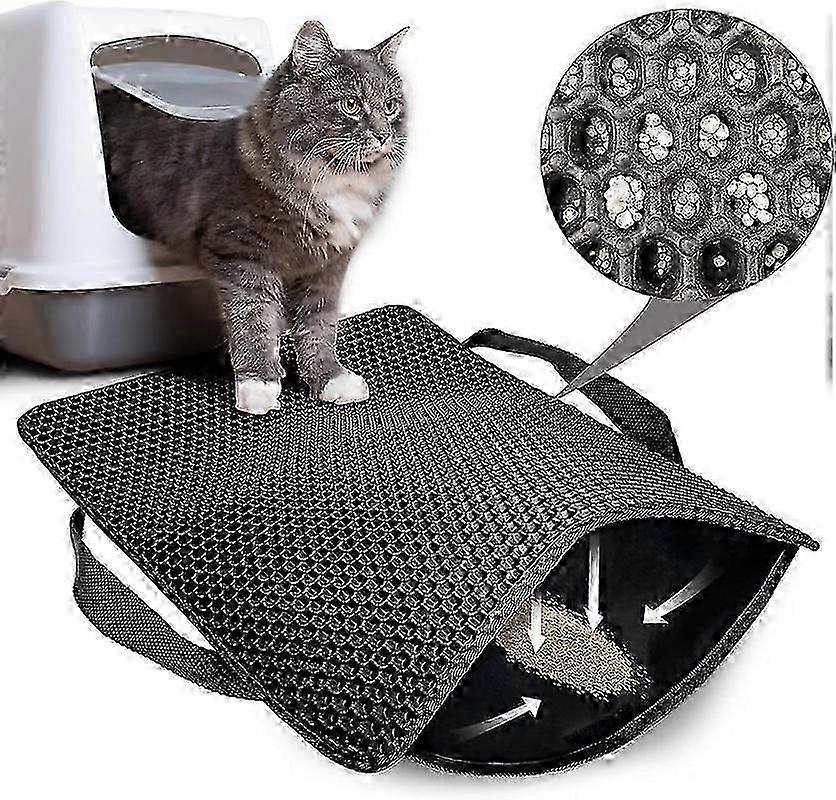 Cat Litter Mat, Double Layer Non-slip Cat Litter Box Mat, Floor Protection Mat
