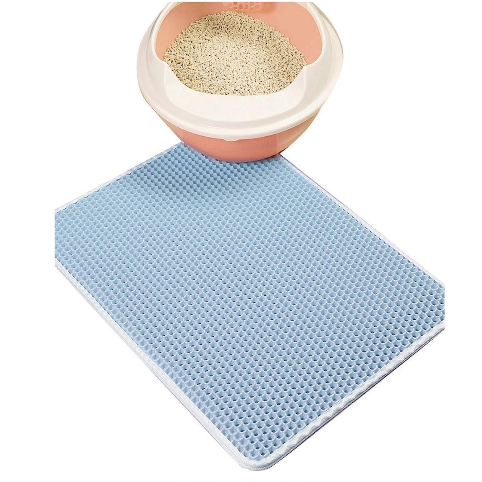 Cat Litter Mat Double Layer Waterproof Slip Resistant Easy Clean Kitty Litter Trapping Mat 40x50cm Baby Blue
