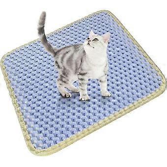 Cat Litter Mat Scatter Control, Litter Tray Mat Double Layer Honeycomb Large Holes Design, Waterproof EVA Material (30X30cm, Blue)