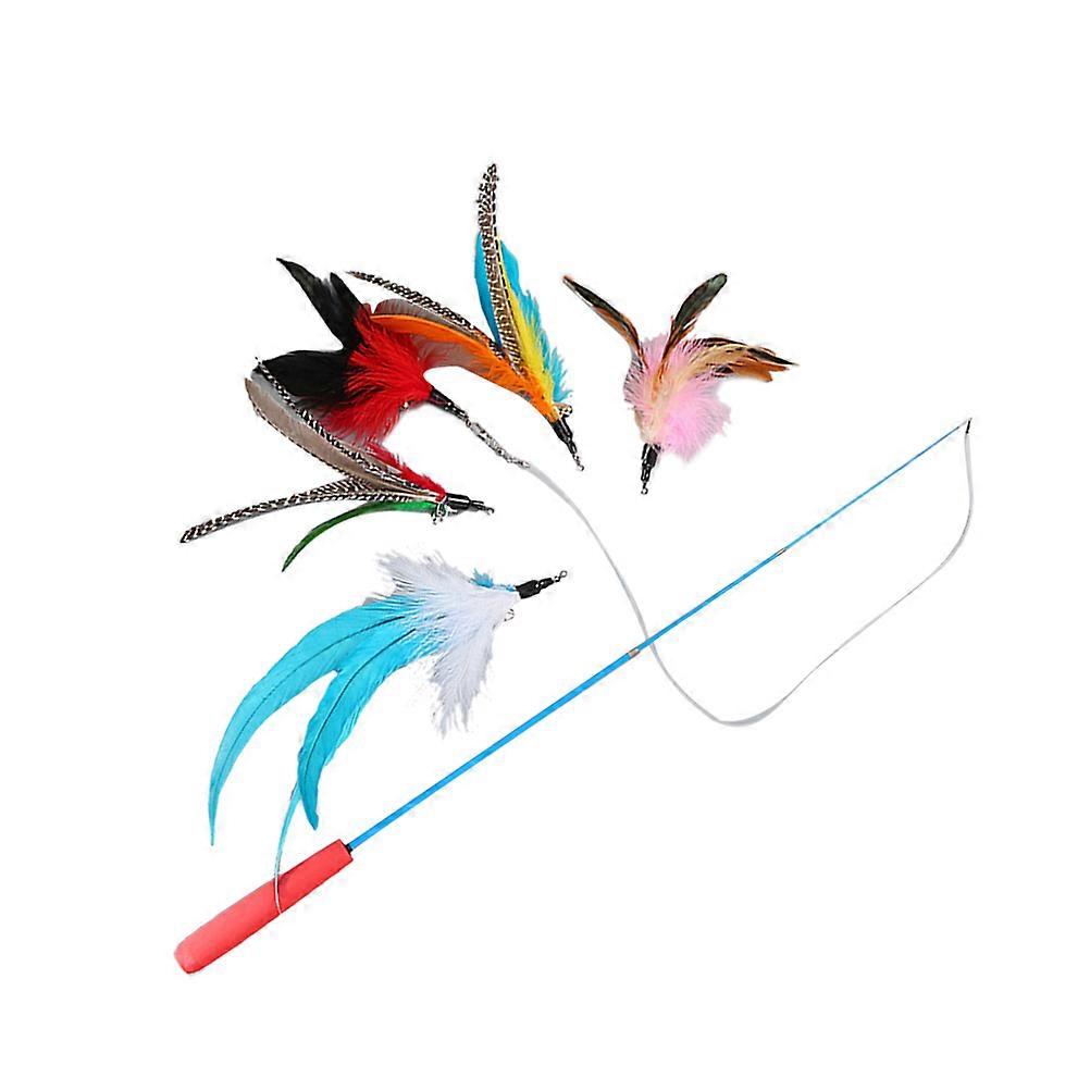 Cat Toy Replaceable Adjustable 3 Section Interactive Play Pet Training Assorted Color 6Pcs