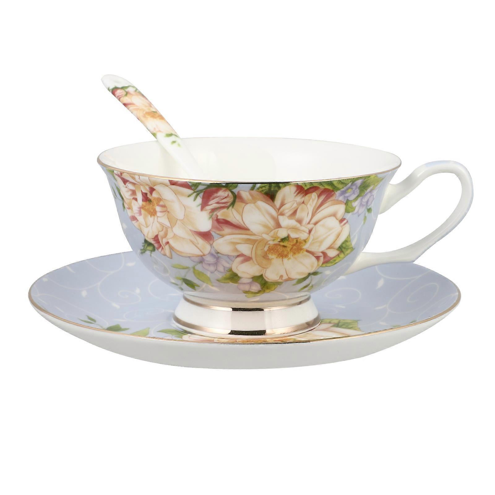 Ceramic Drinking Cups Tea Drinking Hotel Assorted Color Bone China with Saucer and Spoon 1 Set