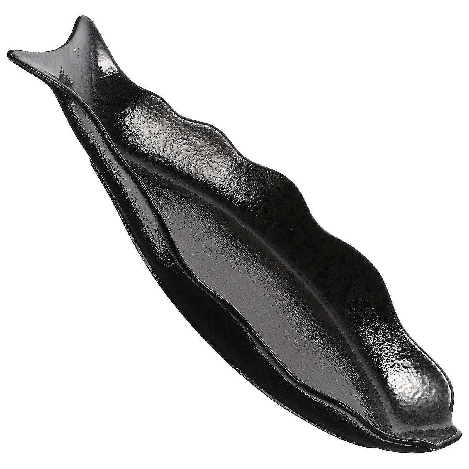 Ceramic Fish Plate Black Material Food Serving Plate for Decor
