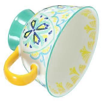 Ceramic Tea Cup Large Capacity Drink Container Artistic Design Floral Patterned Multi Color 1Set