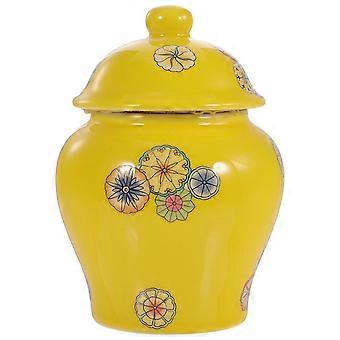 Ceramic Tea Jar Set For Kitchen Storage And Tabletop Use In Yellow Color With Dust-Proof And Freshness Preservation Features 5Pcs
