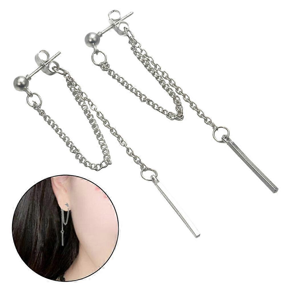 Chain Stud Earrings Set Front to Back 1 Pair Dangling Drop Chain Earrings for Gift