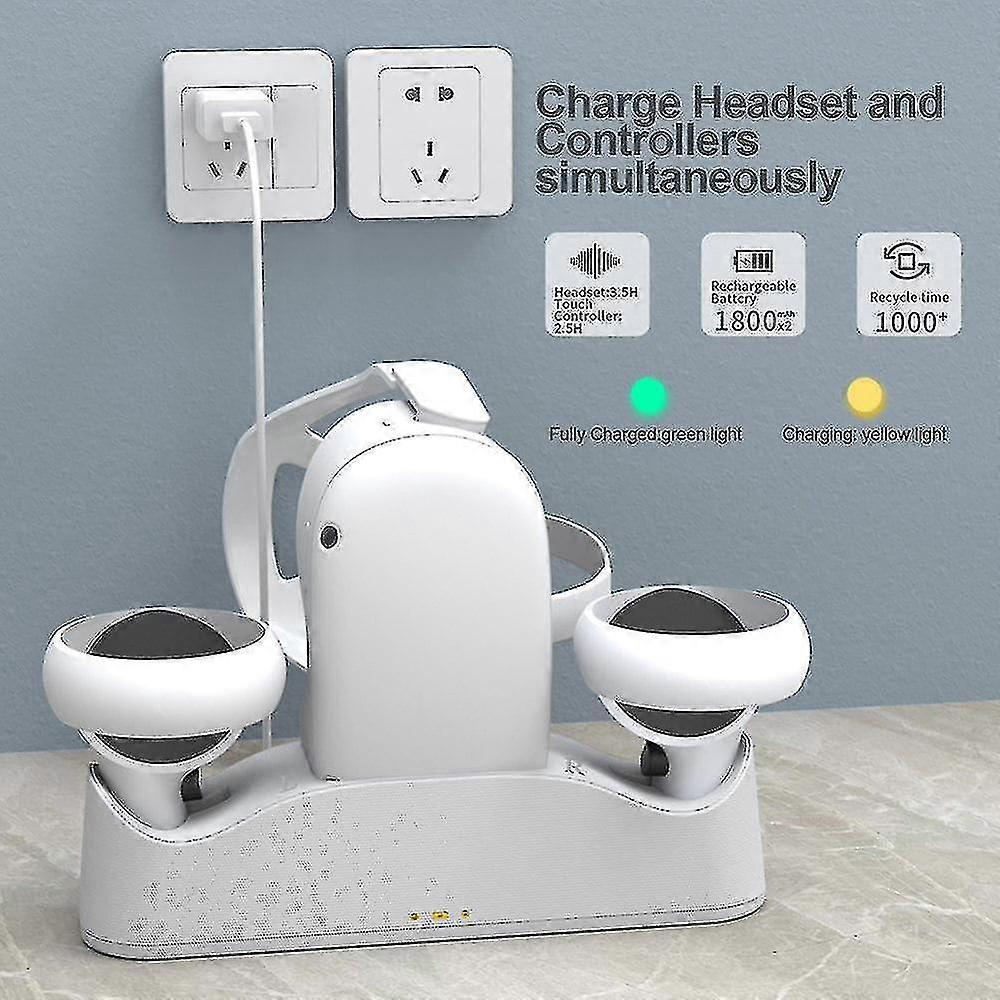 Charging Dock Set For Oculus Quest 2, Usb-c Link Cable, 2 Rechargeable Batteries,2 Battery Covers For Vr Controllers And Headset