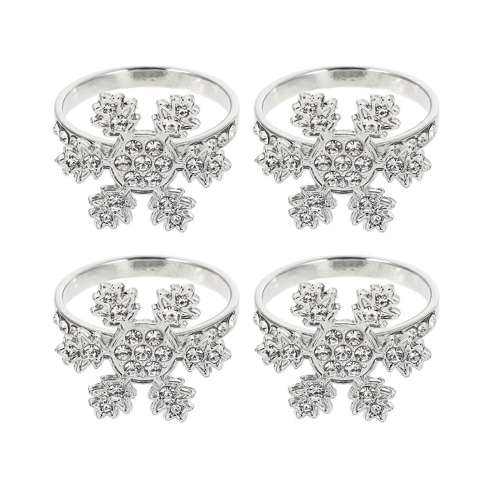 Chic Napkin Ring Silver Snowflake Shape Decoration 4Pcs