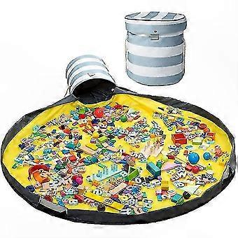 Children's Portable Toy Organizer Mat with Drawstring Closure - Three-Layer EVA Material, Blue and White Pattern