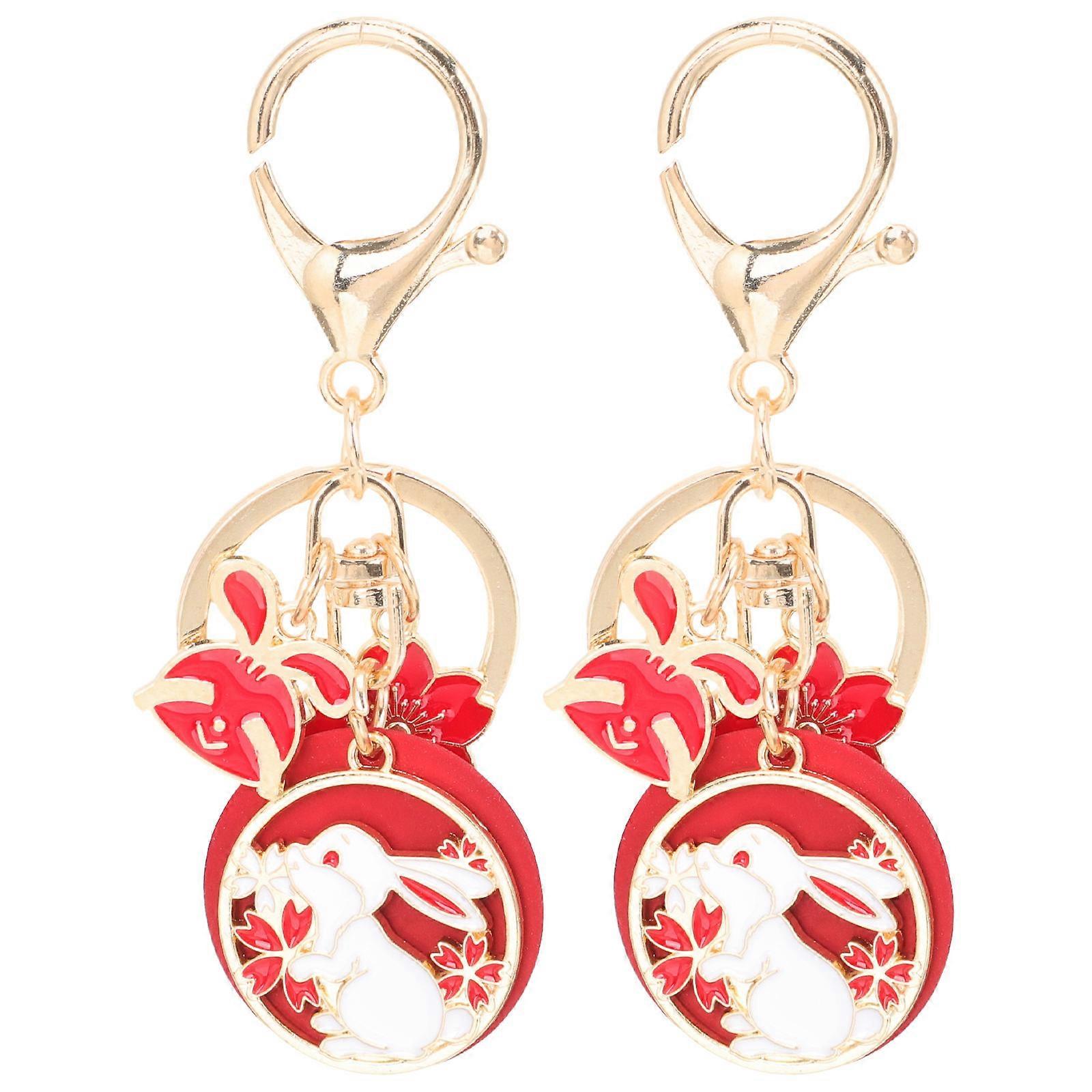 Chinese Style Keychain Rabbit Modeling Metal Key Decor for Car 2Pcs