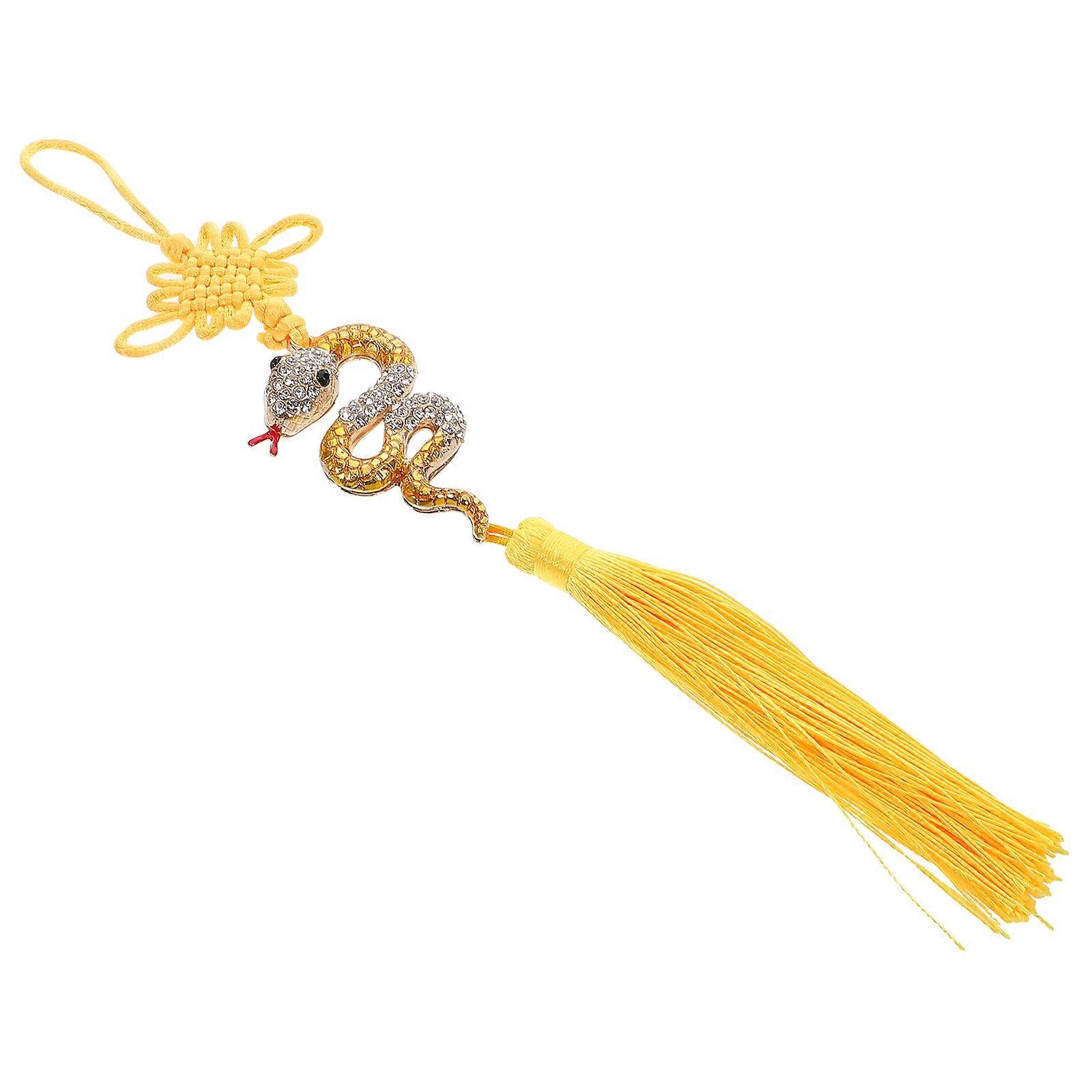 Chinese Style Snake Year Car Hanging Ornament with Rhinestone Tassel Alloy Charm for Rearview Mirror Decor Multi Color