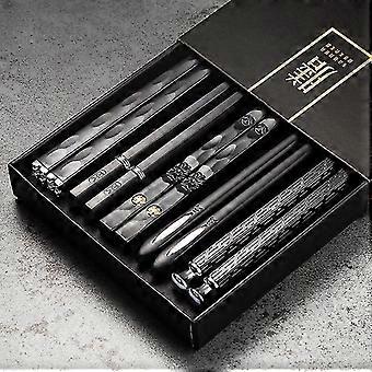 10Pairs Syömäpuikot Set Alloy Syömäpuikot Musta Kuvio Syömäpuikot Musta Kuvio Syömäpuikot